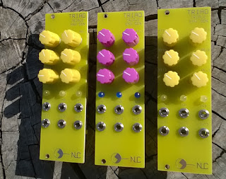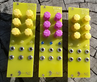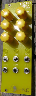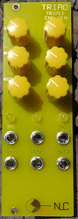These are AR or AD generators that will fire on a trigger or a gate, giving envelopes up to approx 25 seconds. A single gate to input 1 will fire all 3 envelopes, when nothing is plugged into inputs 2 & 3.