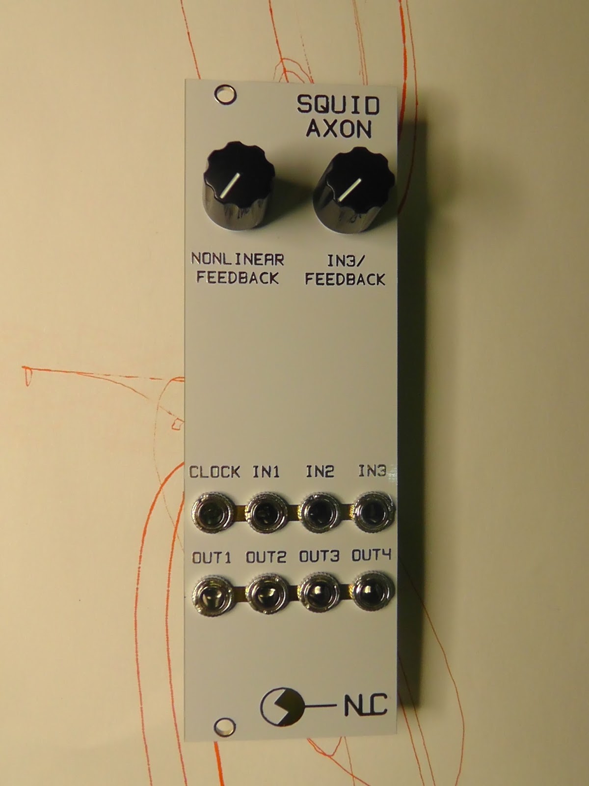 The Squid Axon is a circuit based on the Hodgkin-Huxley equation describing the chaotic behaviour observed in giant squid axons. The inspiration for the module came from a 2003 paper by T. Matsuzaki & M. Nakagawa, titled 'A Bipolar Logistic Chaos Neuron and Its Hardware Implementation'.