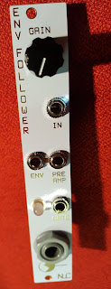 This Envelope Follower PCB was developed for use in the cellF synth, it is based on the design in the Buchla Easel. Obviously it has a few changes; a gain pot rather than a hi/lo switch and a gate output. It is a wonderfully sensitive and expressive EF, that works nicely with regular microphones and guitars.