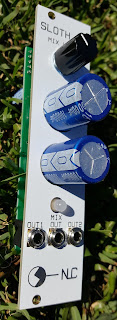 For those that have not seen the Sloth before - this module is a simple chaos circuit that puts out 3 slowly varying and never repeating CV signals. It is not random as the chaos occurs within a bounded region and generally moves in or between two strange attractors or wells.